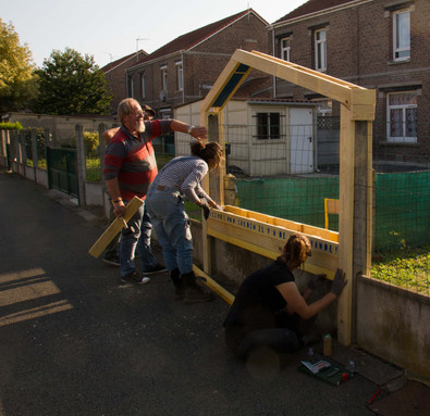 Jean-Pierre est le voisin de l'AMJP3, il était présent lors de la création et la construction de l'installation "Chez moi, mon jardin, il est plein d'oiseau", et il a eu envie de travailler avec nous à une installation pour son propre jardin, qu'il investit très peu. Si cet espace est peu utilisé c'est à cause du vis-à-vis et du manque d'intimité. Nous décidons ensemble de dessiner une forme de brise vue réinterprété, léger et poétique. Chantier prévu la semaine du 27 août !