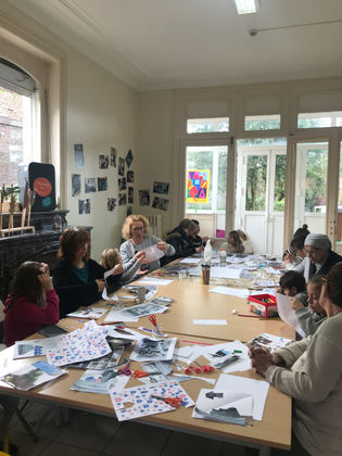 À partir des photographies prises des "choses qui" des habitants, nous réalisons des collages qui serviront de plateau pour un grand jeu de l'oie que nous fabriquerons ensemble !